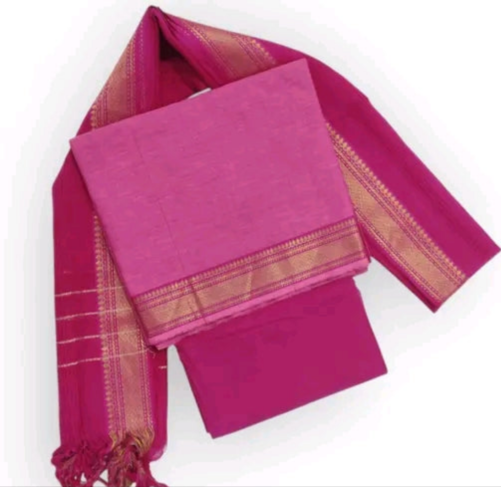 Stay comfortable and stylish with this unstitched salwar suit set, made from high-quality Mangalagiri cotton. Soft, breathable, and perfect for everyday or festive wear.