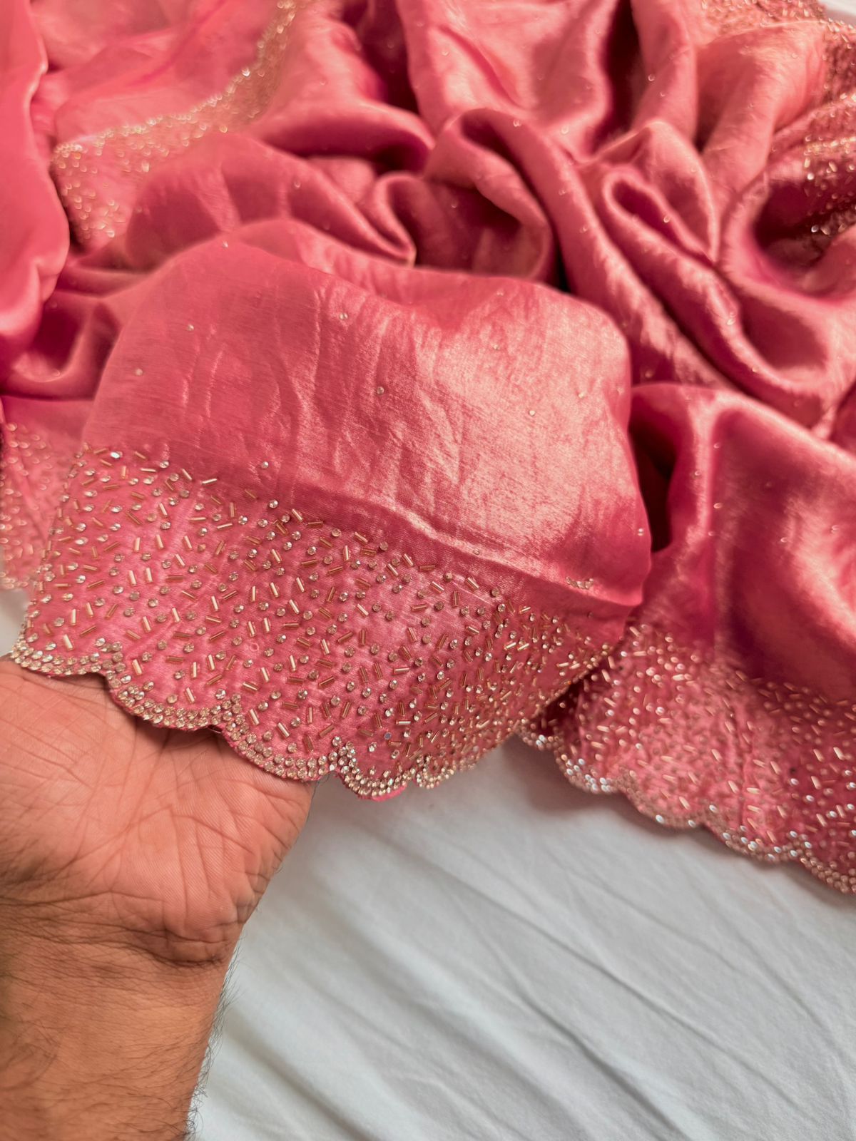 This stunning saree is crafted from Soft Blooming Frendy Silk and adorned with delicate stone work that adds just the right sparkle to your look.